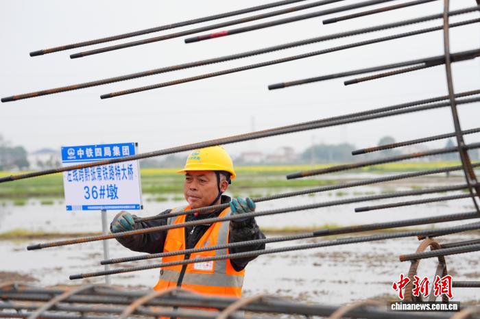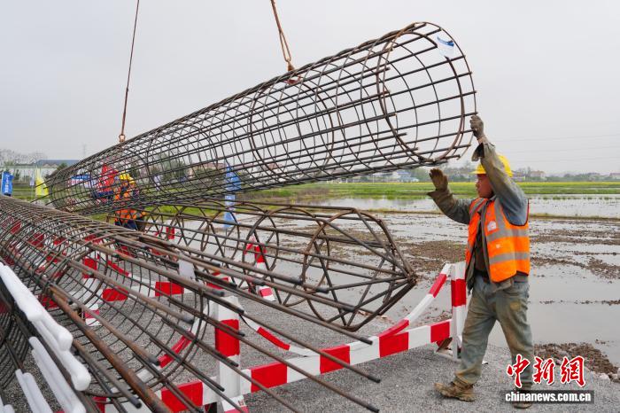 图为工人停止桩基钢筋笼吊拆功课。中新社记者 杨华峰 摄