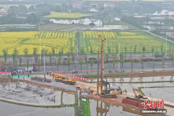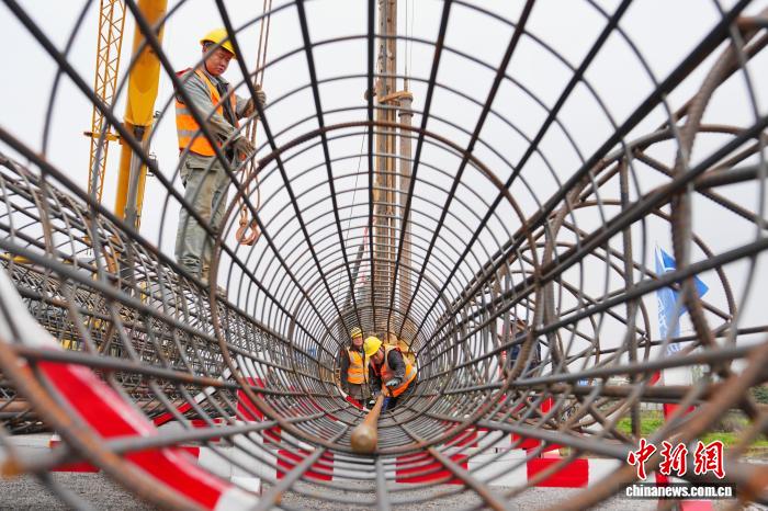 图为工人停止桩基钢筋笼吊拆功课。中新社记者 杨华峰 摄